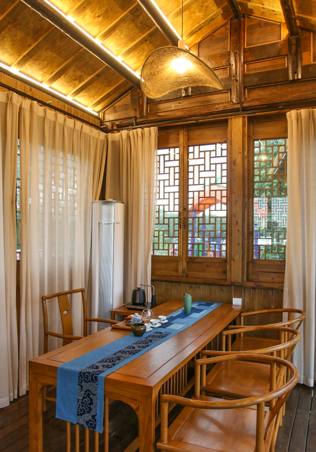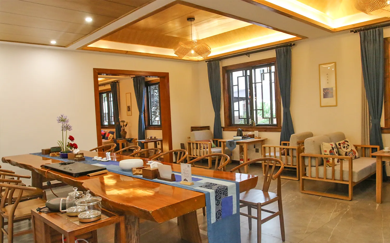 年俗·年舍为独栋川西民居建筑风格,定位为轻奢型乡村精品民宿,占地700平方米,内设客房以及茶室、餐厅、休闲室、书吧等多种功能用房,可容纳100余人同时用餐,10间特色客房分中式现代和中式复古两种风格,简洁别致的空间设计装修风格,管家式的经营服务,秉着归舍似家的经营理念,家具摆设以生态、质朴的风格为主,简约而不简单、朴素而不失精美,让游客身居其中倍感亲切、舒适和温暖。